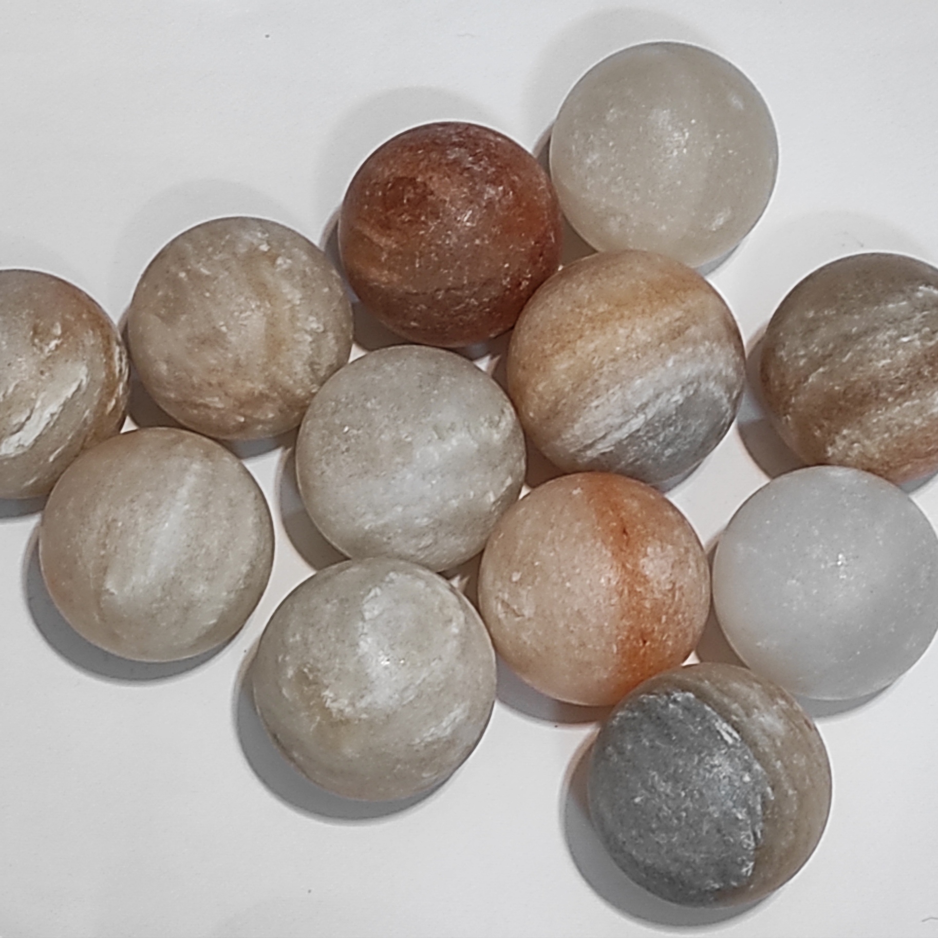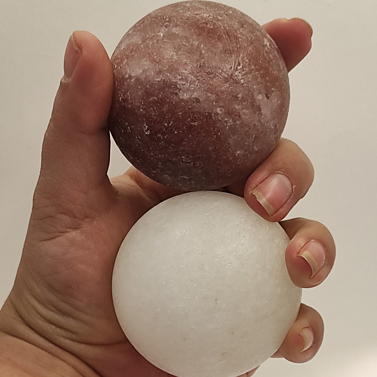 گوی سنگ نمک 6 این محصول .به صورت کروی و قطر6 سانتی متر می باشد. ساخته شده از سنگ نمک است و برای ماساژ صورت و کف پا مورد استفاده قرار می گیرد. همچنین این محصول در منزل می تواند انرژی بد را دور نگه دارد و بر روی خواب و تنفس نیز تاثیر مثبت بگذارد. به طور کلی سنگ نمک یا هالیت به عنوان یکی از رسانههای ماساژ، در تکنیکهای مختلف ماساژ مورد استفاده قرار میگیرد. این سنگها به دلیل خواص خود، به عنوان یک ابزار ماساژ مطرح شدهاند. سنگ نمک دارای خواص گرمایی و آرامبخشی است که باعث میشود ماساژ با سنگ نمک بهترین تاثیر را در کاهش استرس و تسکین دردهای عضلانی و استخوانی داشته باشد. ماساژ با سنگ نمک میتواند به عنوان یک روش موثر در درمان دردهای عضلانی و استخوانی، کاهش استرس، افزایش انرژی، بهبود خواب و افزایش جریان خون و اکسیژن در بدن عمل کند. در این روش، سنگهای نمک به دمای بالا گرم میشوند و پس از آن به صورت مستقیم روی پوست قرار داده میشوند. سپس ماساژ دهنده با استفاده از سنگهای گرم، با حرکات مداوم و یکنواخت، تنشهای عضلانی را کاهش میدهد و باعث بهبود جریان خون و اکسیژن در بدن میشود.