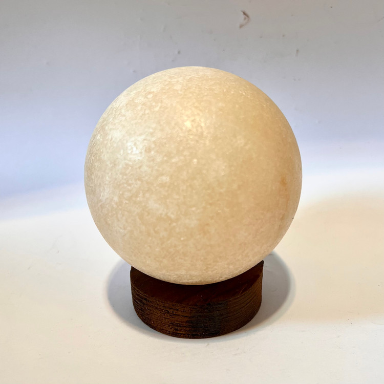 # گوی سنگ نمک قطر 8 سانتیمتر با پایه چوبین