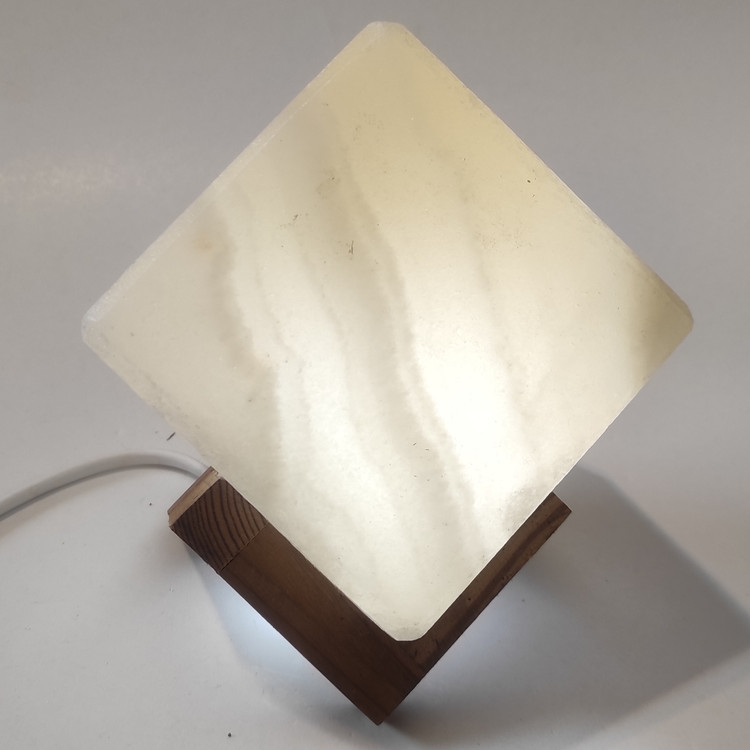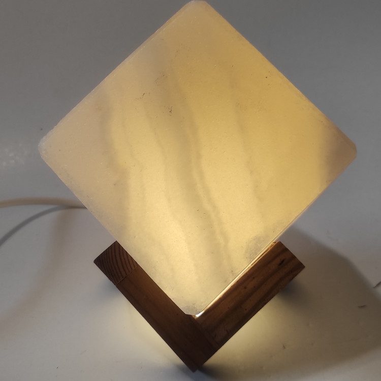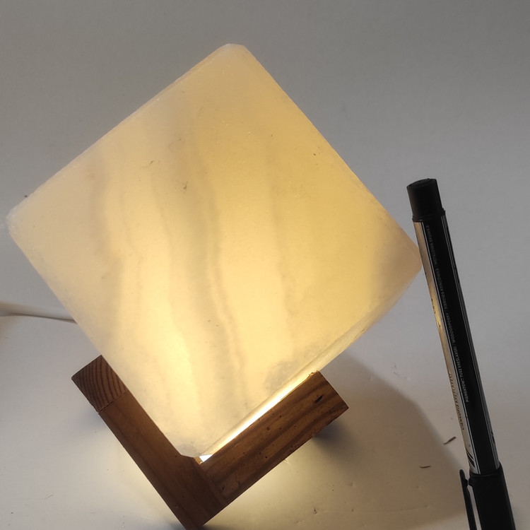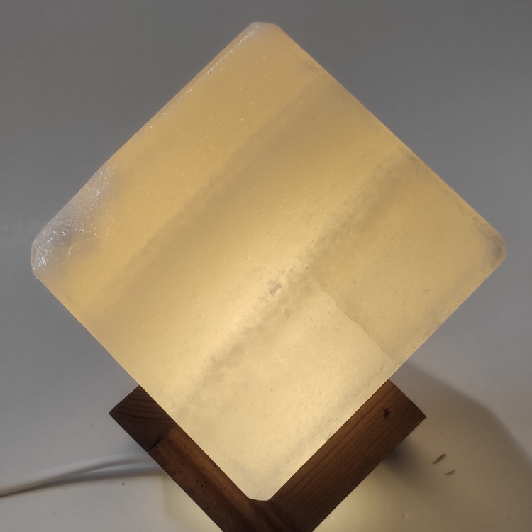 آباژور مکعب سنگ نمک طرح کره. همانطور که در تصویر مشخص است . این آباژور ها از سنگ نمک صد در صد طبیعی ساخته شده است . نور این آباژور ها از ال ای دی ۱.۵ وات تعمیم میشود که بسیار کم مصرف است یعنی اگر ۲۴ ساعت هم روشن باشد نه داغ میشود و نه آسیب میبیند و نه برق چندانی مصرف میکند . سیم آباژور یک متر و نیم است که به برق شهری ۲۲۰ ولت وصل میشود .