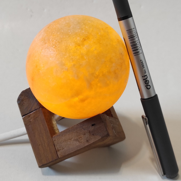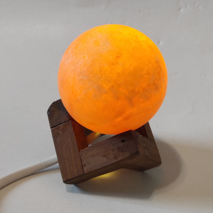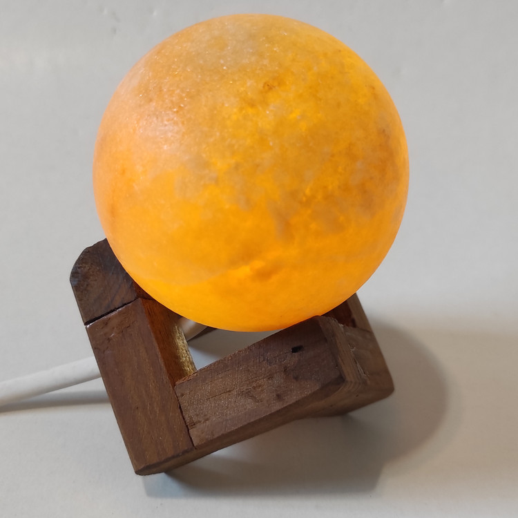 آباژور کروی سنگ نمک طرح کره. همانطور که در تصویر مشخص است . این آباژور ها از سنگ نمک صد در صد طبیعی ساخته شده است . نور این آباژور ها از ال ای دی ۱.۵ وات تعمیم میشود که بسیار کم مصرف است یعنی اگر ۲۴ ساعت هم روشن باشد نه داغ میشود و نه آسیب میبیند و نه برق چندانی مصرف میکند . سیم آباژور یک متر و نیم است که به برق شهری ۲۲۰ ولت وصل میشود .