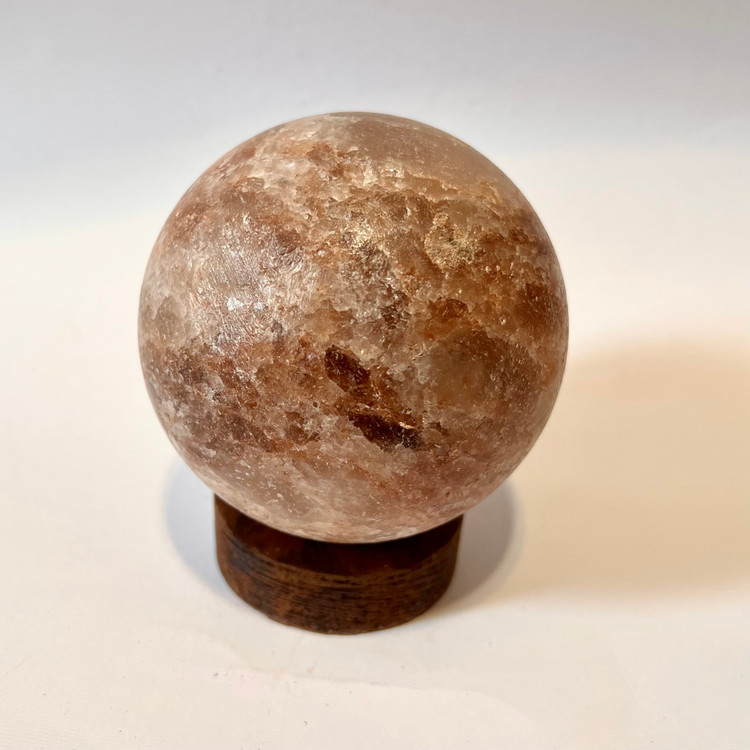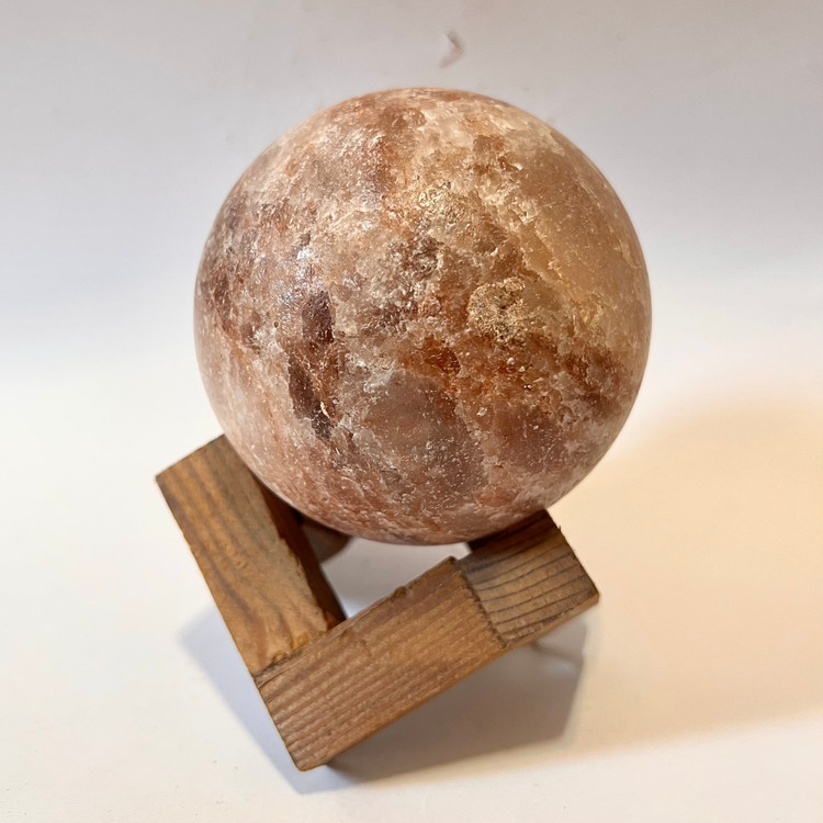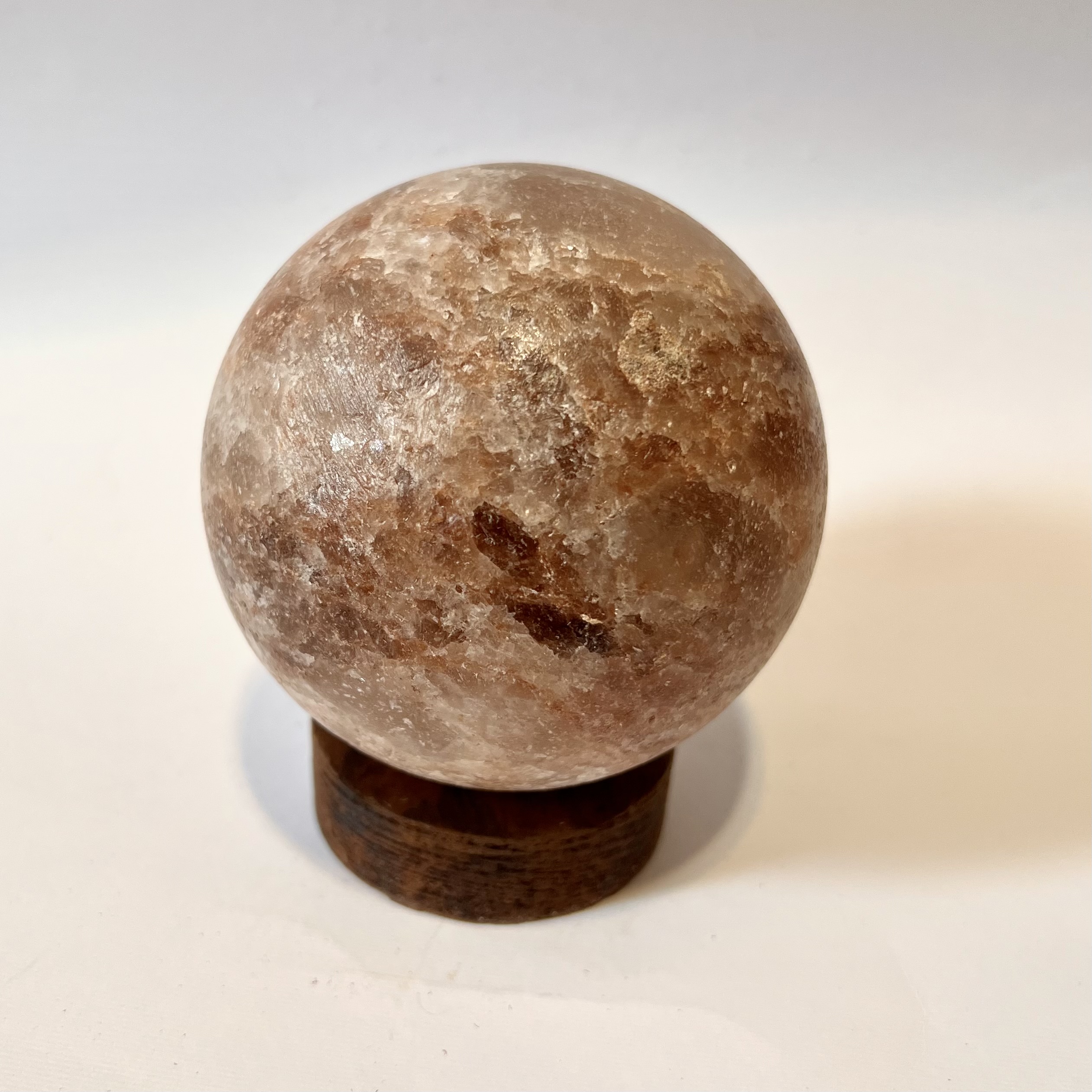 # گوی سنگ نمک قطر 8 سانتیمتر با پایه چوبین