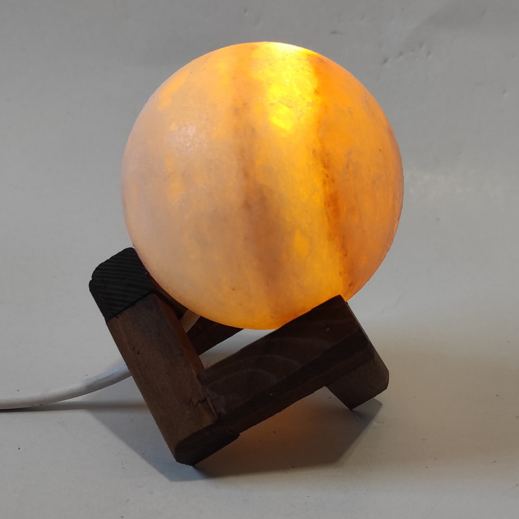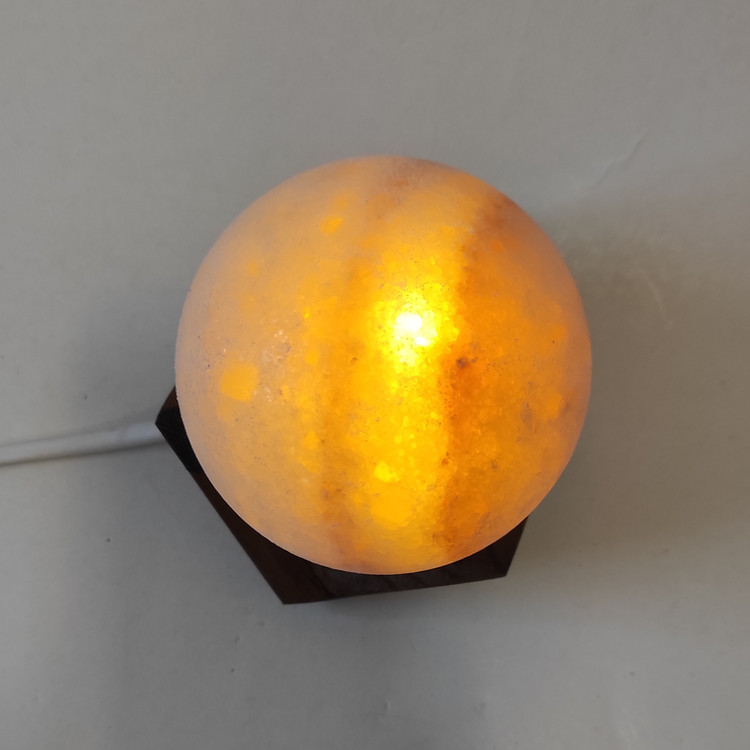 آباژور کروی سنگ نمک طرح کره. همانطور که در تصویر مشخص است . این آباژور ها از سنگ نمک صد در صد طبیعی ساخته شده است . نور این آباژور ها از ال ای دی 2 وات تامین میشود که بسیار کم مصرف است یعنی اگر ۲۴ ساعت هم روشن باشد نه داغ میشود و نه آسیب میبیند و نه برق چندانی مصرف میکند . سیم آباژور یک متر و نیم است که به برق شهری ۲۲۰ ولت وصل میشود .