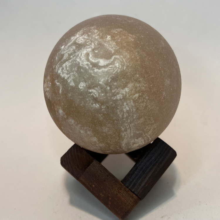 # گوی سنگ نمک قطر 8 سانتیمتر با پایه چوبین